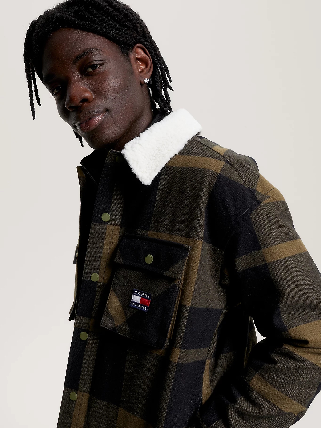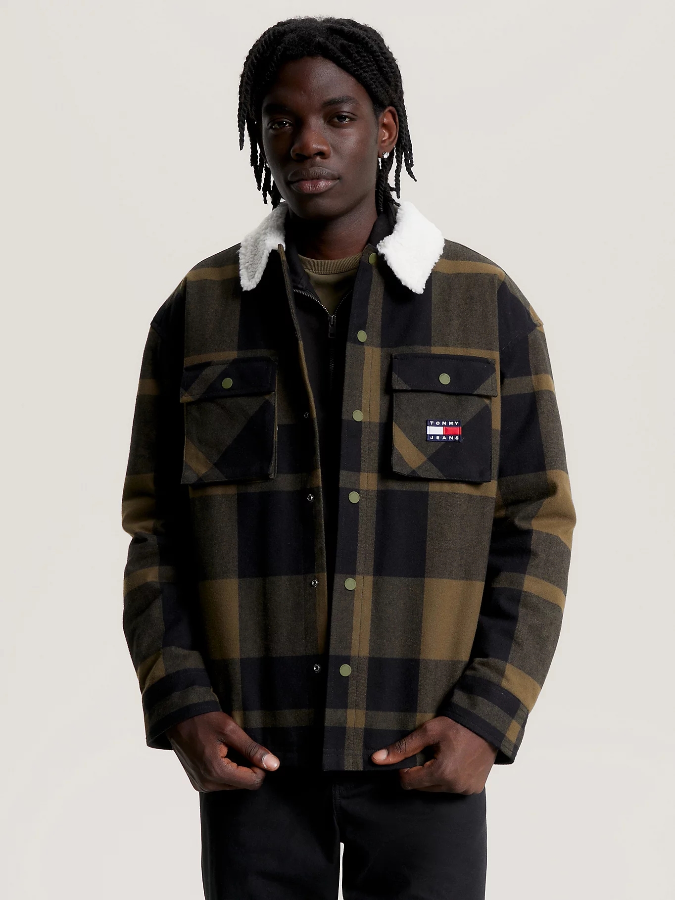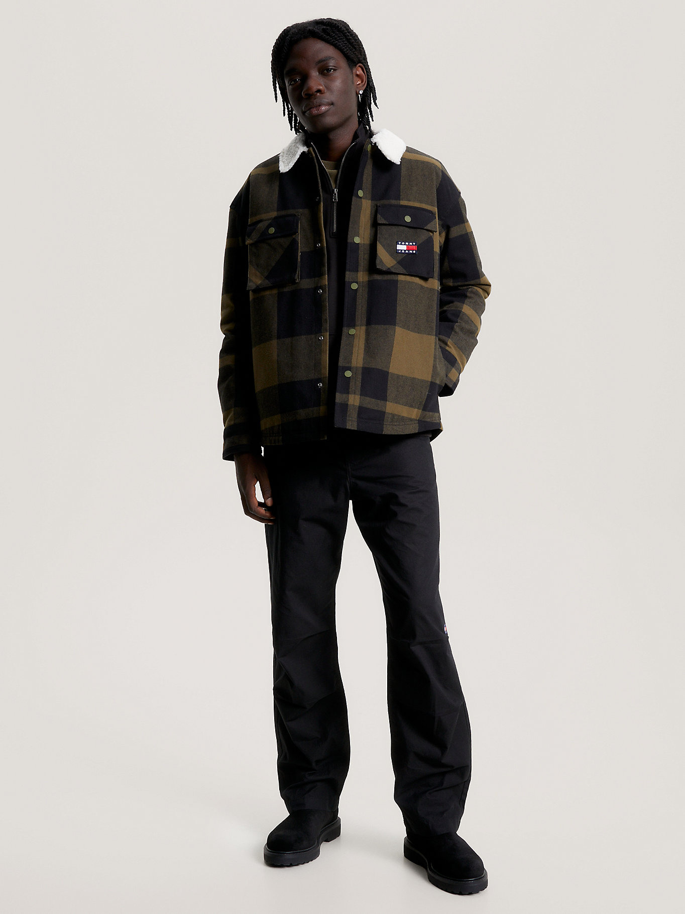 chemise homme th tjm check sherpa lined overshi