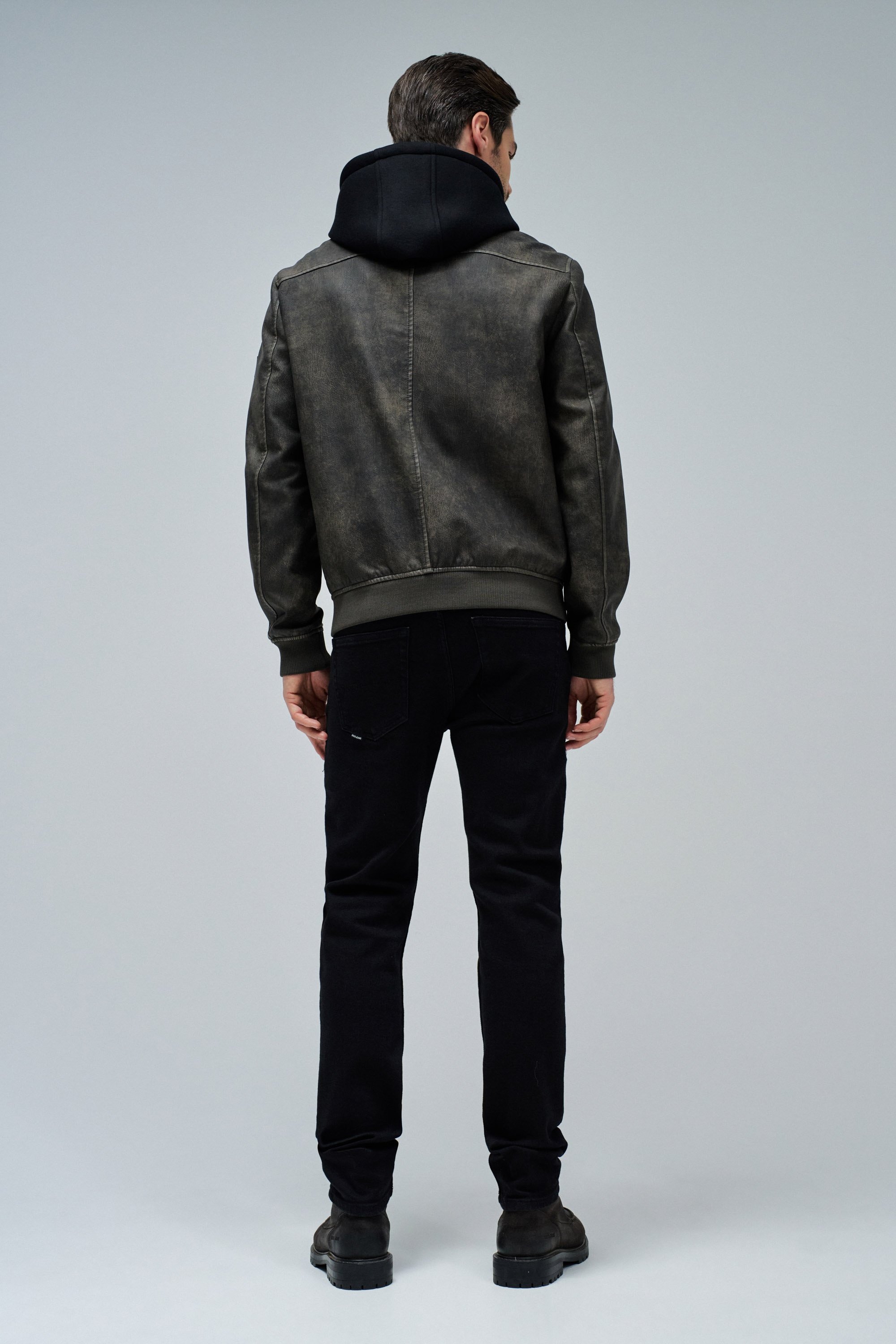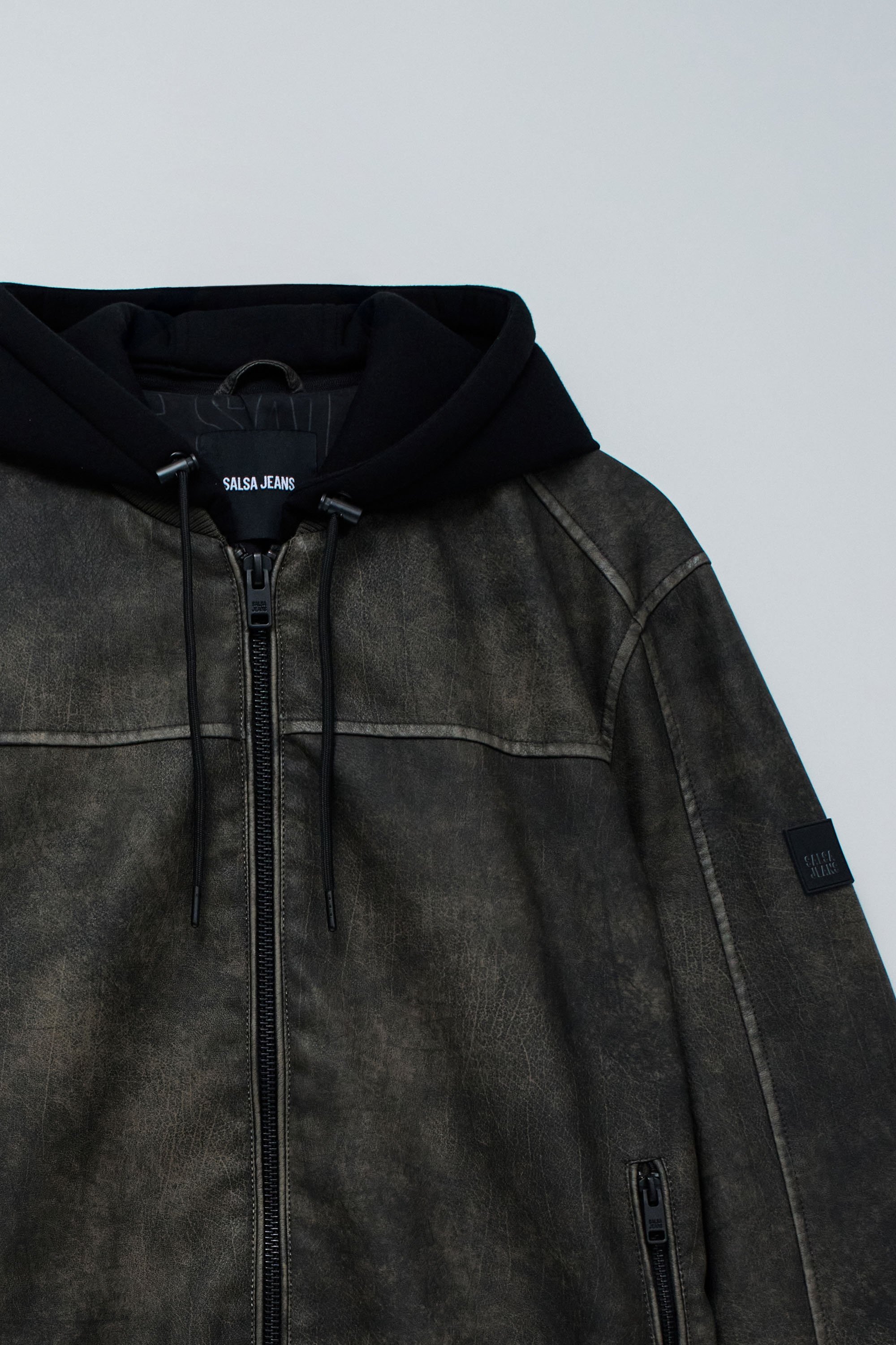 cazadora homme salsa jeans hooded fake leather bomber jac