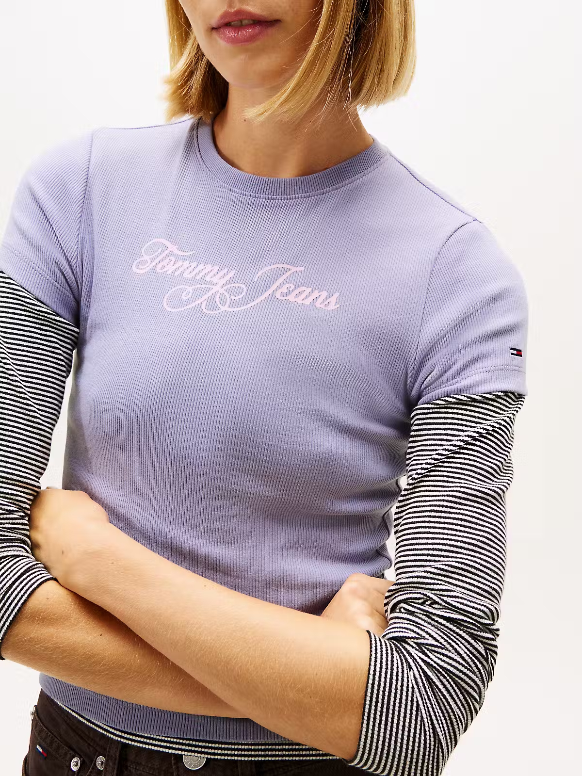 t-shirt femme tommy hilfiger tjw slim ess logo 1 rib tee ex